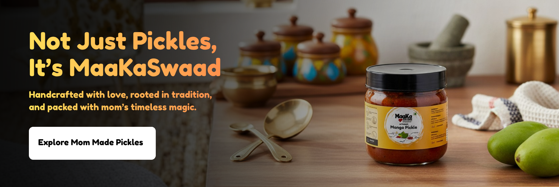 We offer a range of flavors — from mild to fiery. Whether you like it tangy, spicy, or sweet, there’s a Maakaswaad pickle for every taste bud.