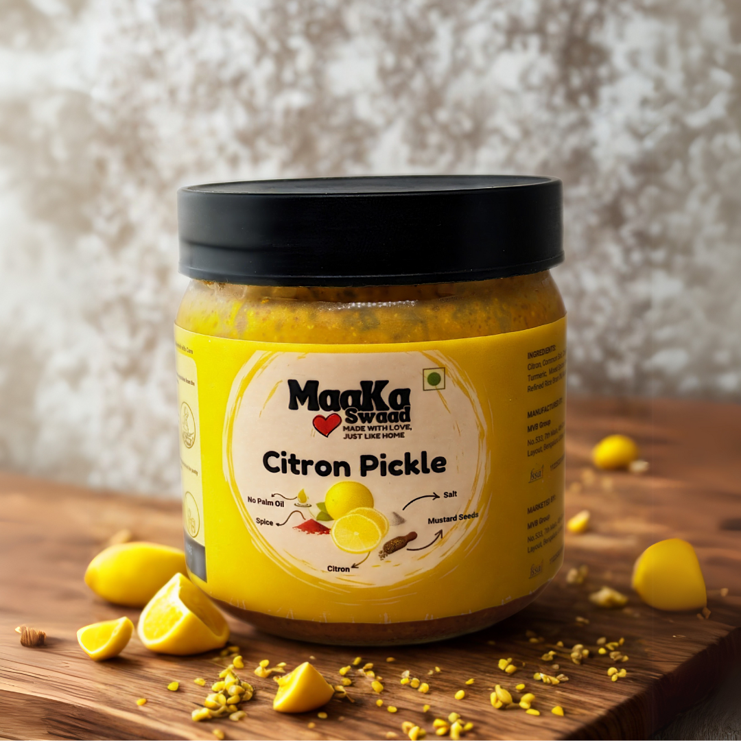 Citron, Common Salt, Chilly Powder, Turmeric, Mixed Spices Powder, Refined Rice Bran Oil, Mustard Seeds.